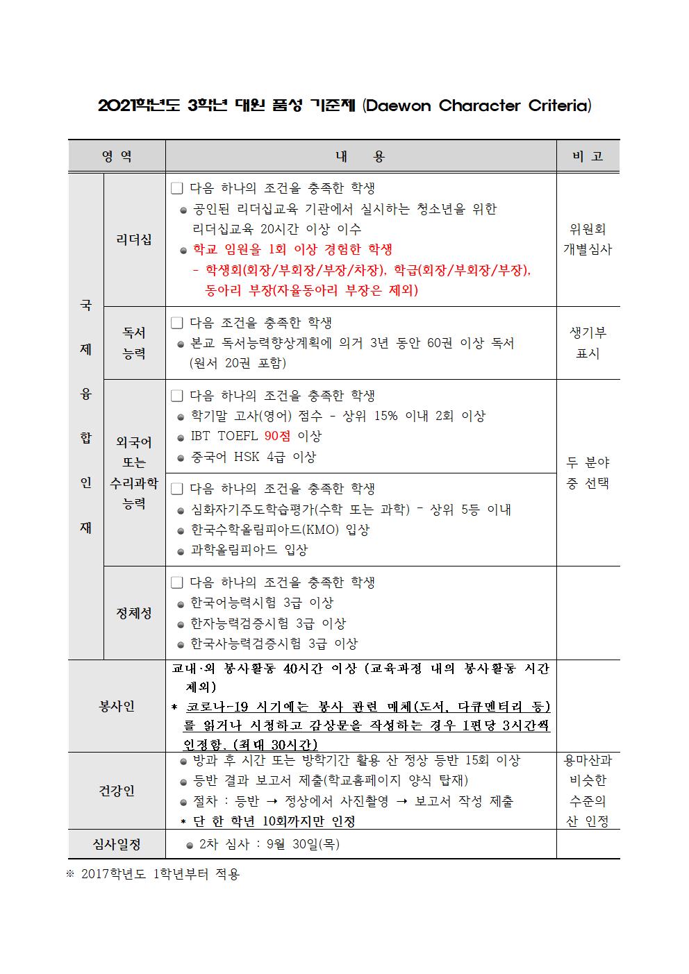 1) 2021Çг⵵ ´ë¿ø ǰ¼º ±âÁØÁ¦(DCC) Ãßõ¼(Çʼö)