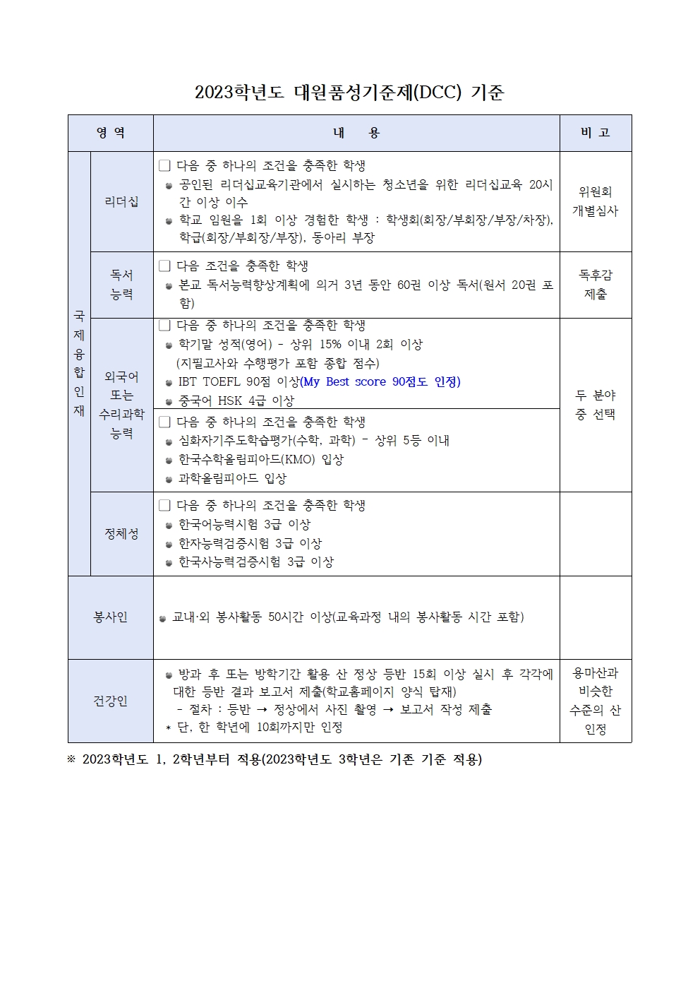 2023Çг⵵ 1, 2ÇÐ³â ´ë¿ø ǰ¼º±âÁØÁ¦(DCC) ±âÁØ °³Á¤ ¾È³»
