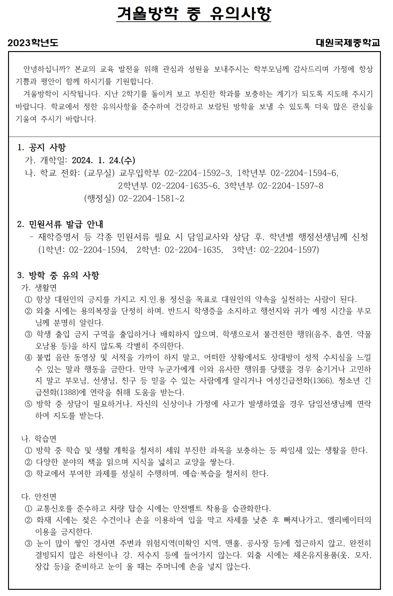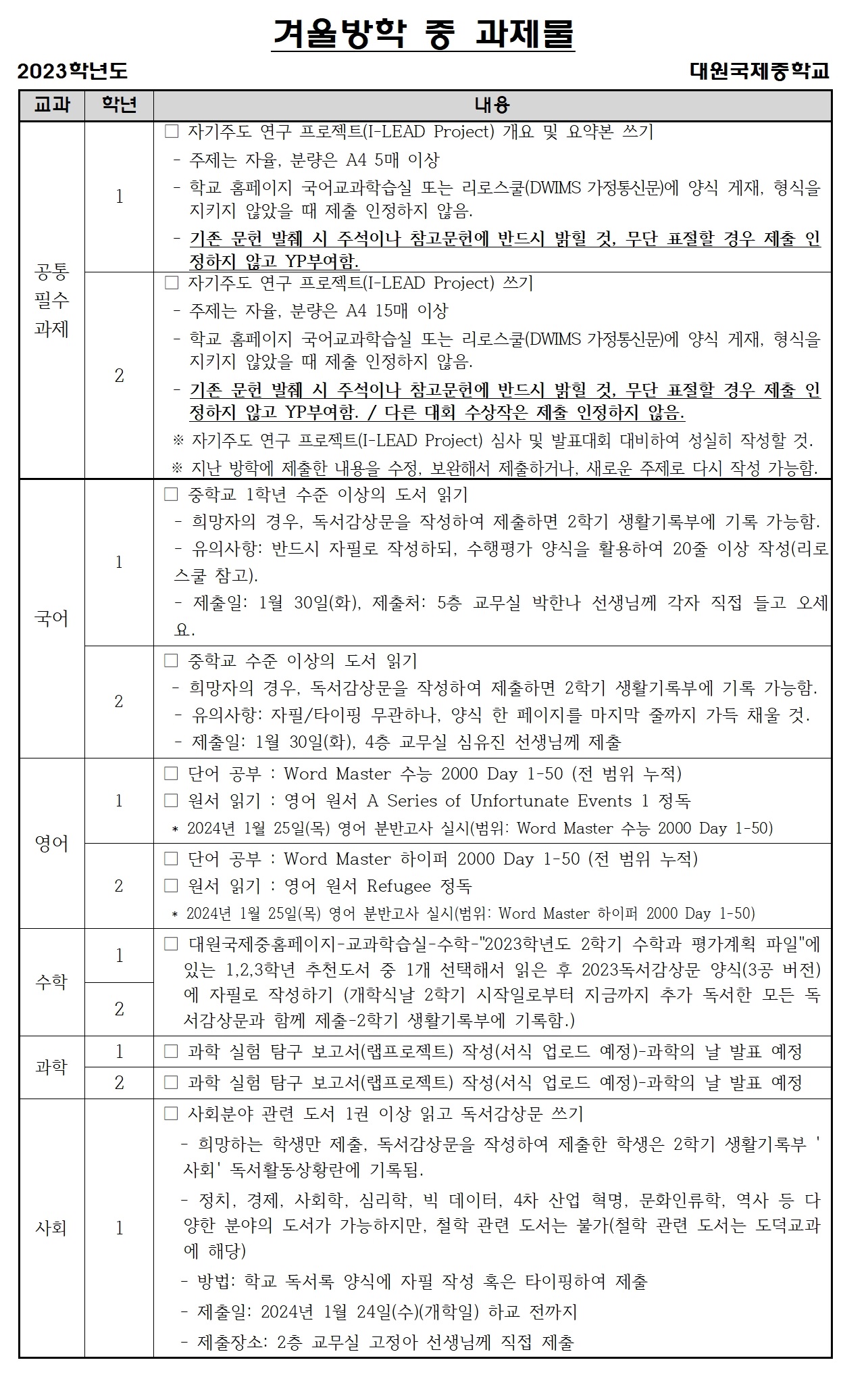 2023Çг⵵ °Ü¿ï¹æÇÐ Áß À¯ÀÇ»çÇ× ¹× °úÁ¦¹°(Çлý¹èºÎ¿ë).hwp 2023Çг⵵ °Ü¿ï¹æÇÐ Áß À¯ÀÇ»çÇ× ¹× °úÁ¦¹°(Çлý¹èºÎ¿ë).hwp   ´Ù¿î·Îµå ¼ö : [ 126 ]