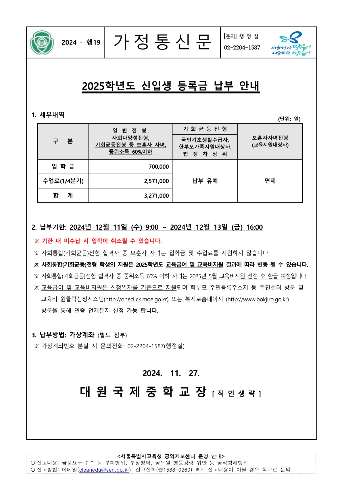 [2024-ÇàÁ¤-019]2025Çг⵵ ½ÅÀÔ»ý µî·Ï±Ý ³³ºÎ ¾È³»