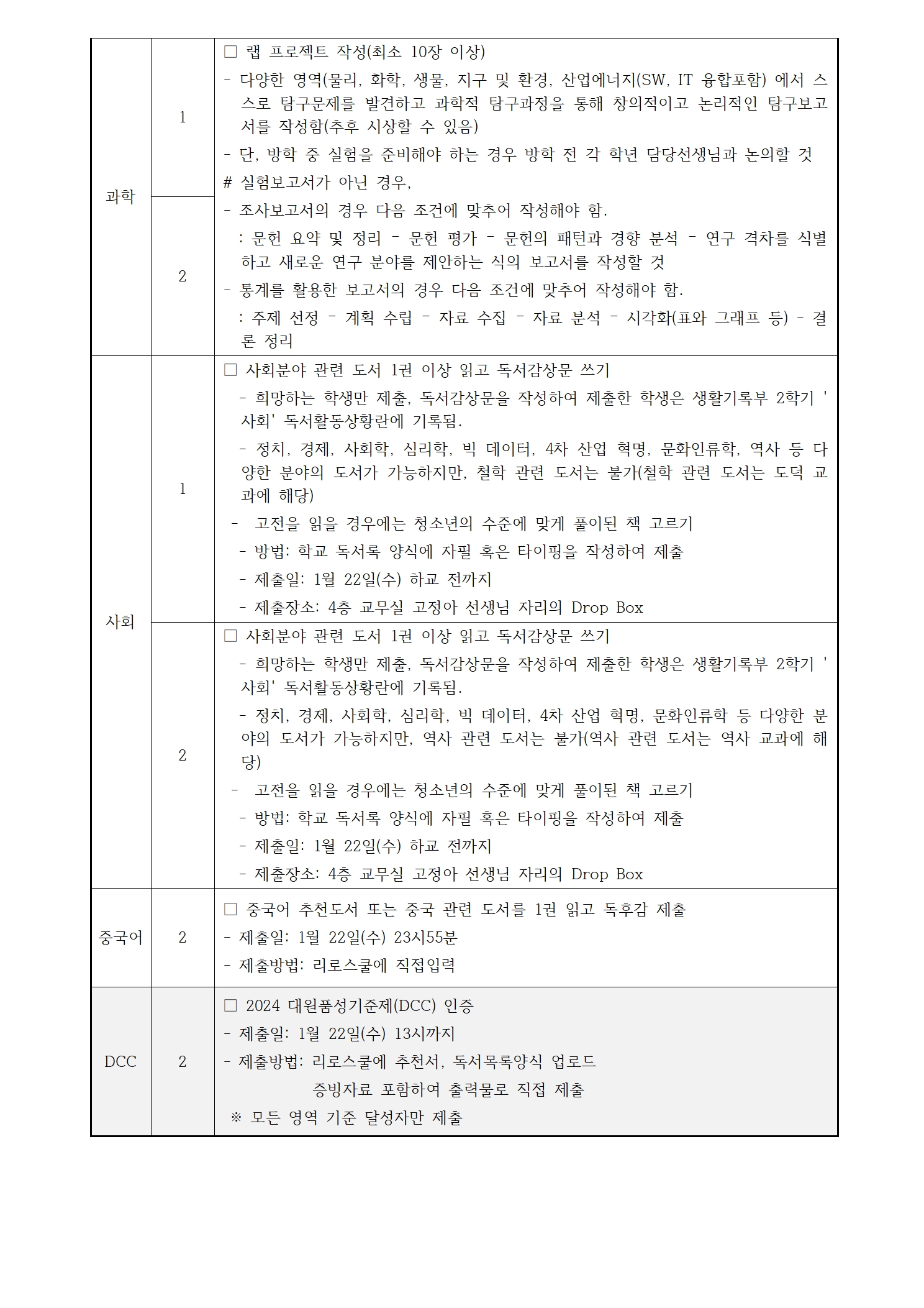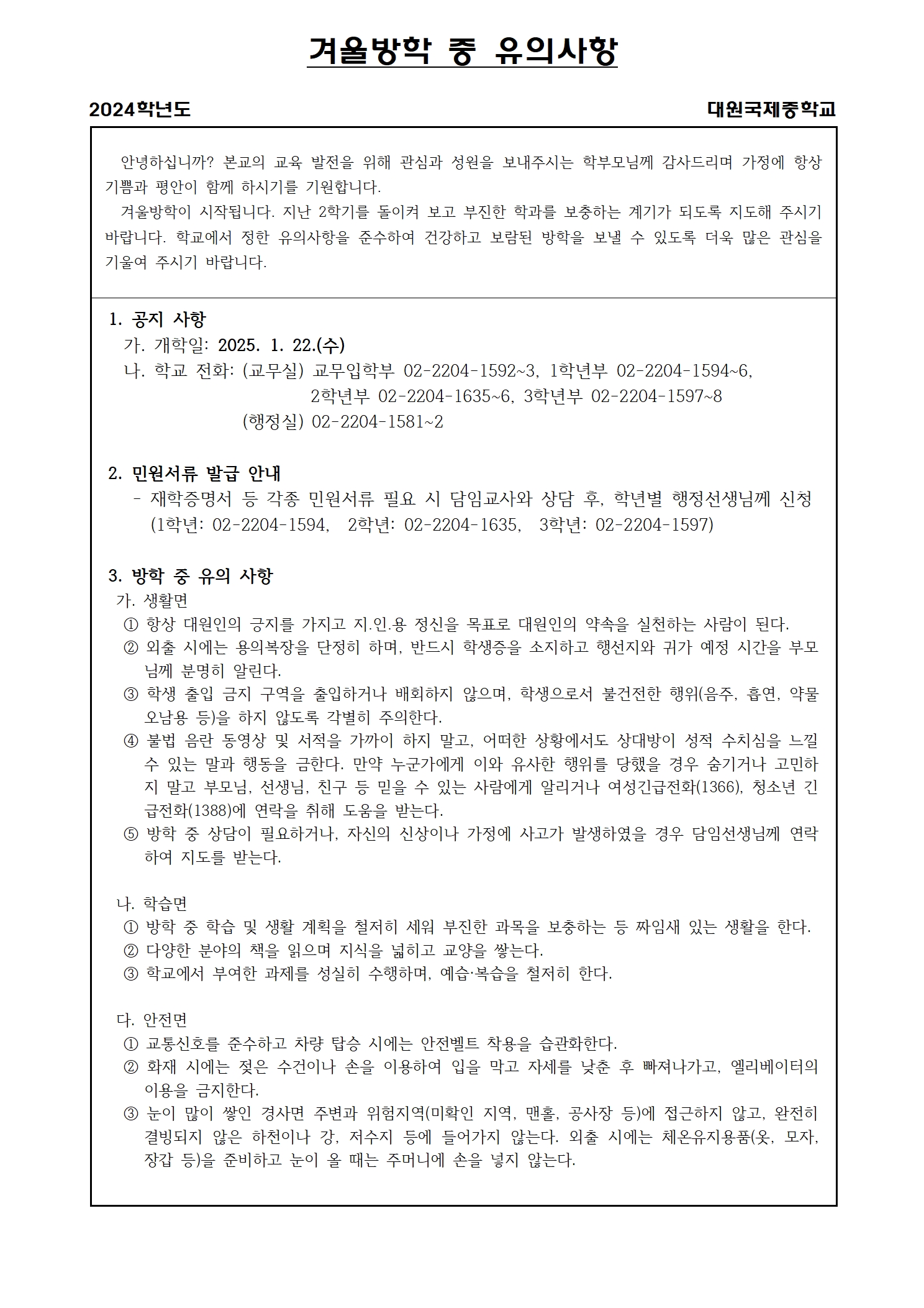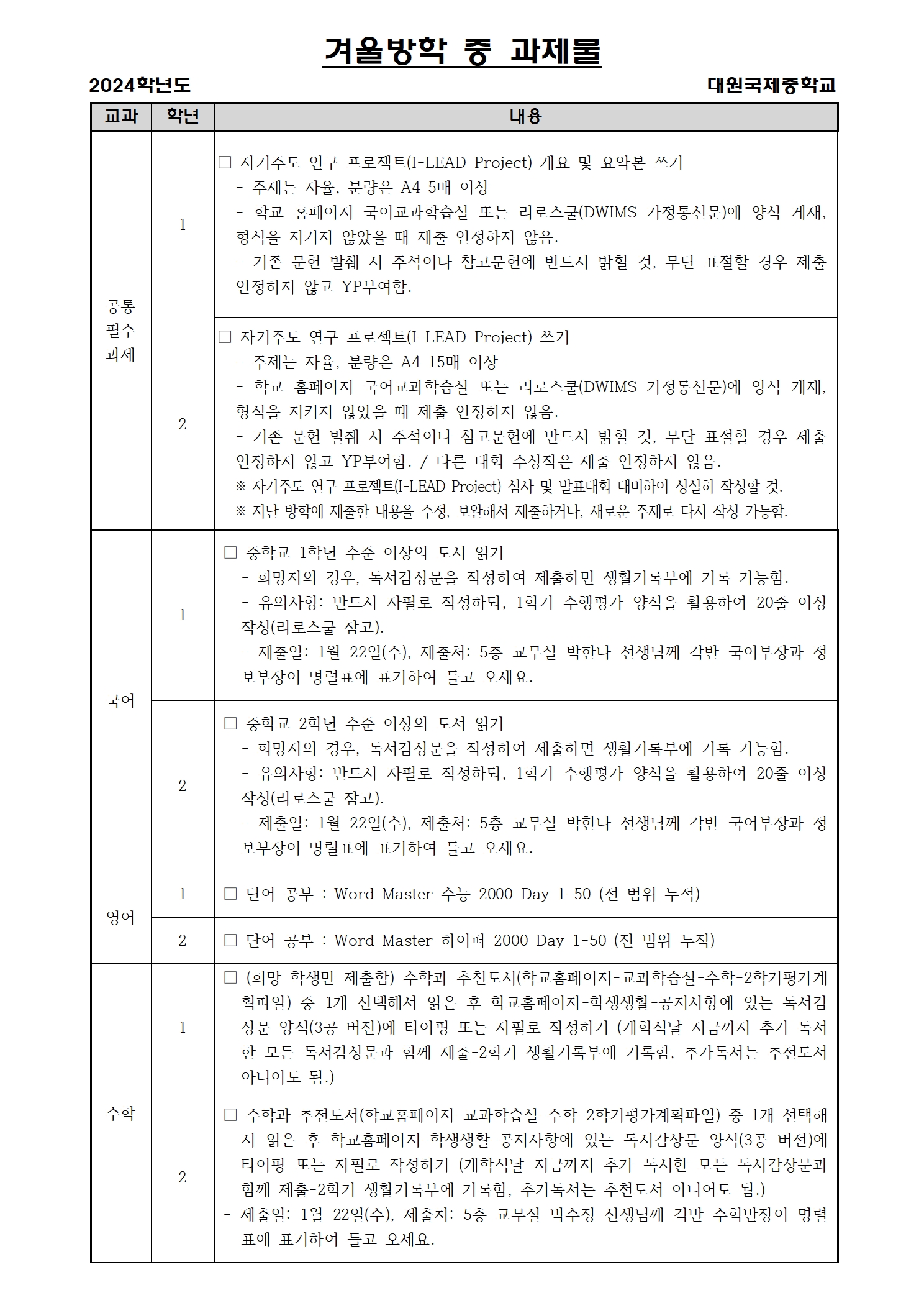 2024Çг⵵ °Ü¿ï¹æÇÐ Áß À¯ÀÇ»çÇ× ¹× °úÁ¦¹°(Çлý¹èºÎ¿ë)