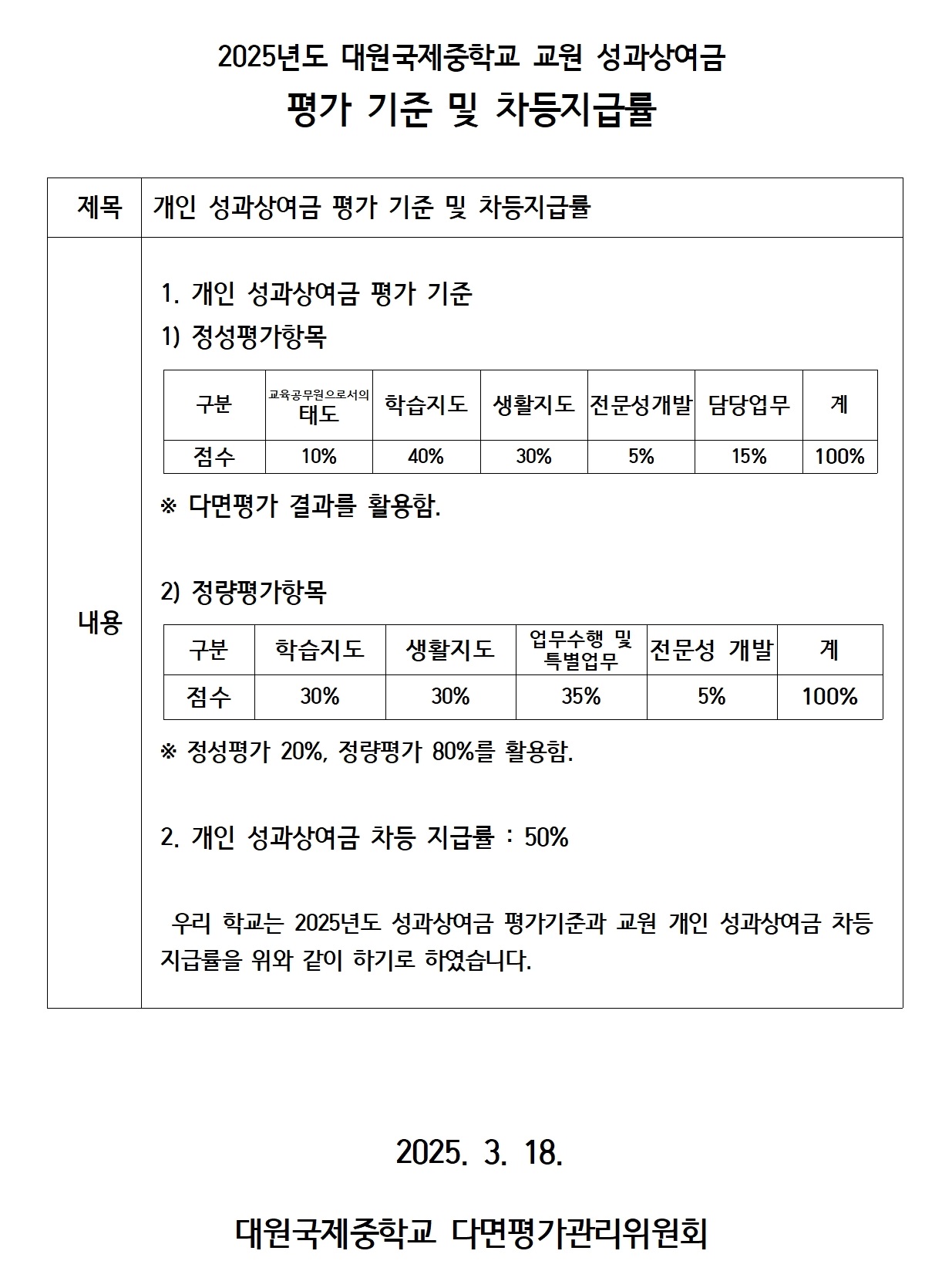 2025³âµµ ±³¿ø¼º°ú»ó¿©±Ý Æò°¡ ±âÁØ ¹× Â÷µîÁö±Þ·ü(0319¼öÁ¤)
