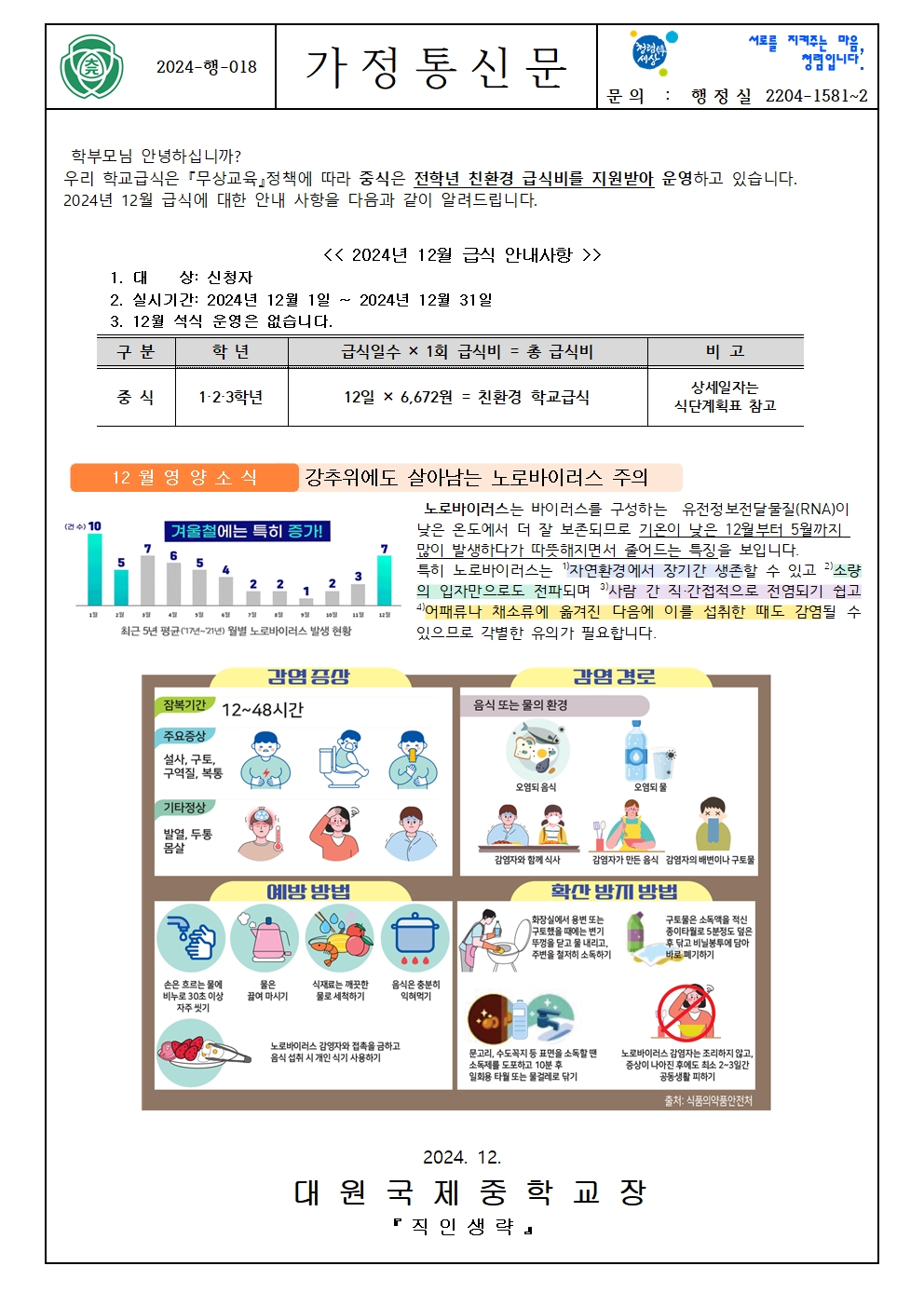2024Çг⵵ 12¿ù Çб³ ±Þ½Ä(Áß½Ä) °¡Á¤Åë½Å¹® ¾È³»(¿µ¾ç±³À°,½Ä´Ü°èȹǥ)