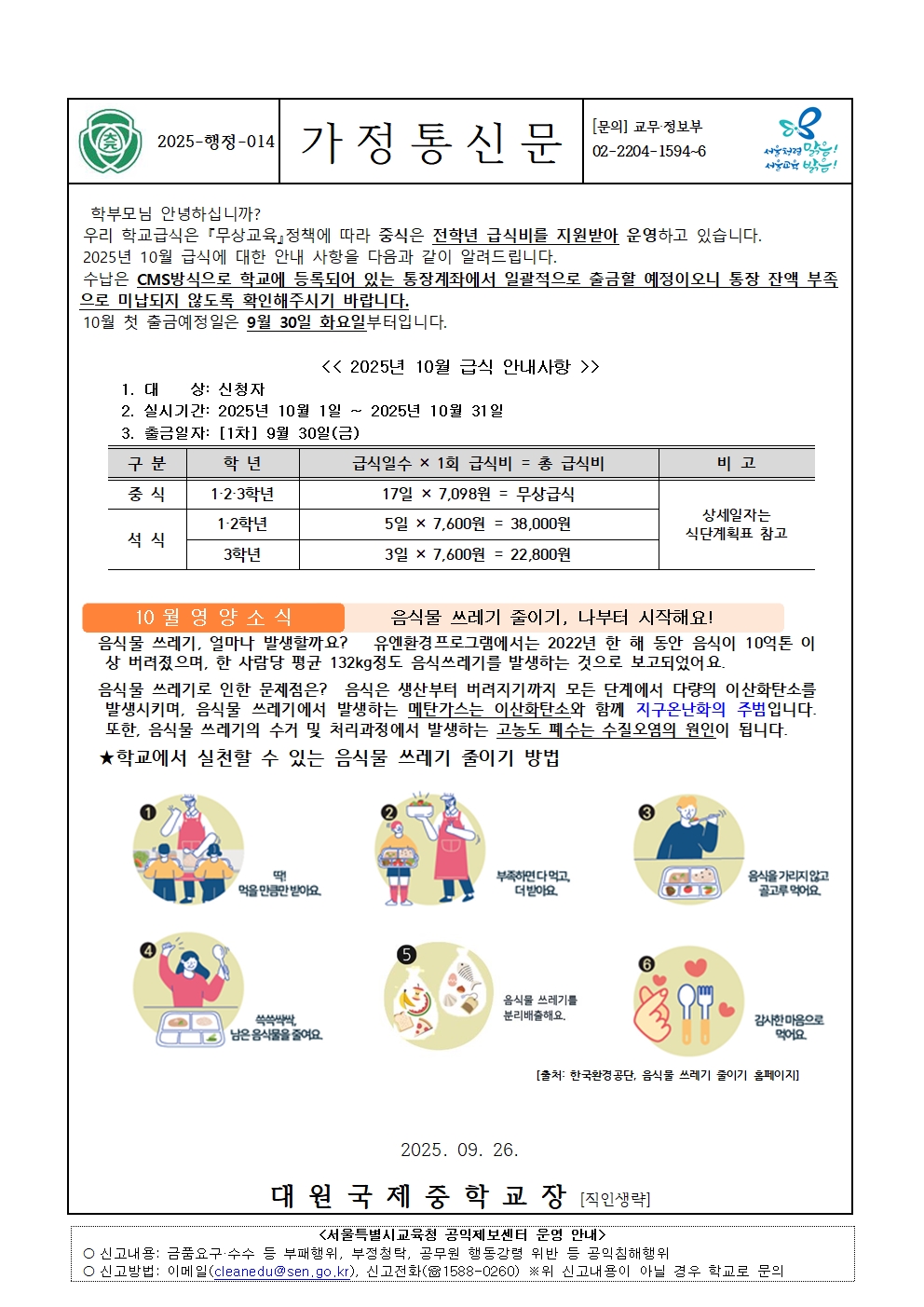2025Çг⵵ 10¿ù Çб³±Þ½Ä(Áß,¼®) °¡Á¤Åë½Å¹®À» ºÙÀÓ°ú °°ÀÌ ¾È³»ÇÕ´Ï´Ù.