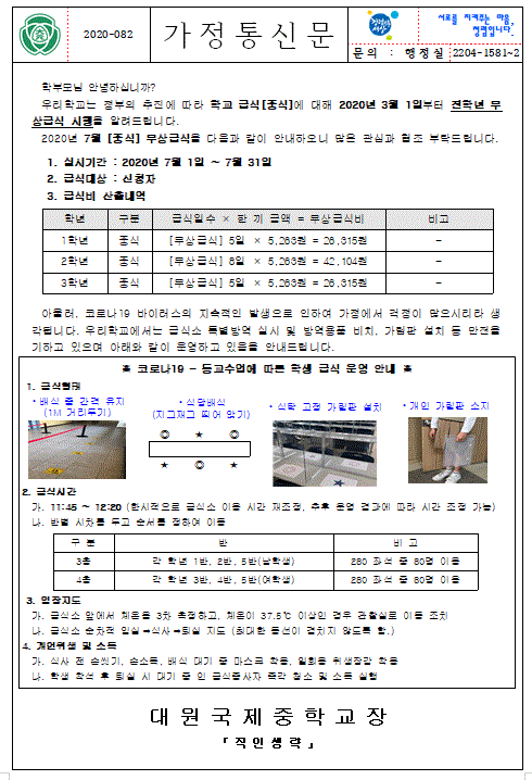 2020Çг⵵ 7¿ù ±Þ½Ä °¡Á¤Åë½Å¹®(±Þ½Äºñ ÀÎÃâ ¹× Äڷγª19 °ü·Ã ¿î¿µ ¾È³», ½Ä´Ü°èȹǥ)