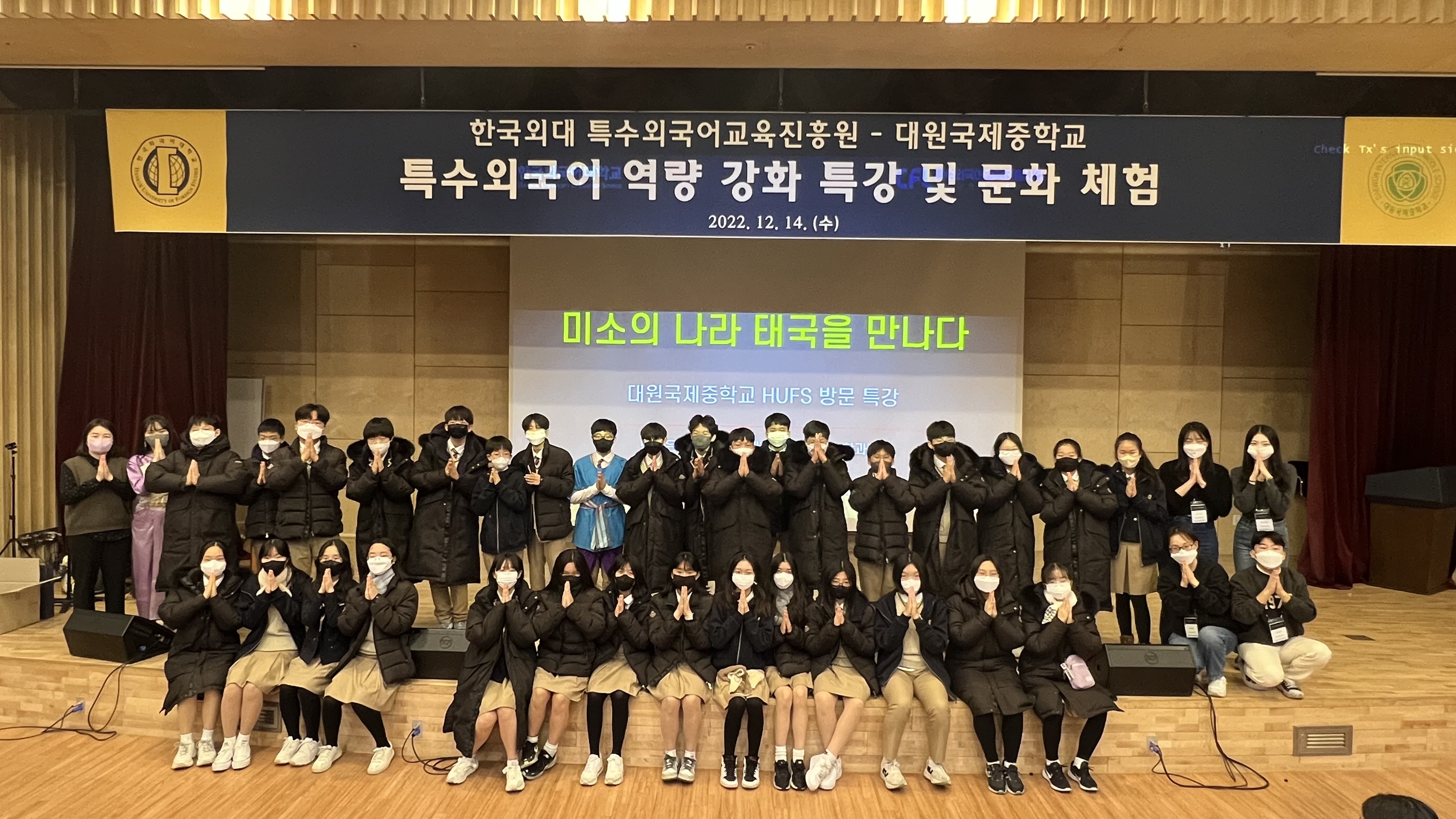 ±Û·Î¹ú ¿ª·®°­È­ ÇÁ·Î±×·¥ÀÇ ÀÏȯÀ¸·Î Çѱ¹¿Ü±¹¾î´ëÇб³ Ư¼ö¿Ü±¹¾î±³À°ÁøÈï¿ø°ú MOU¸¦ ü°áÇϰí, ÇлýµéÀº °ü½É ¾ð¾î¸¦ ¼ö°­ ½ÅûÇÏ¿© ű¹ ¿Ü±¹¾î¿Í ¹®È­¿¡ ´ëÇÑ °­¿¬À» ¼ö°­ÇÒ ¼ö ÀÖ¾ú½À´Ï´Ù.