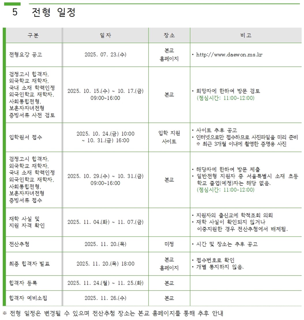 2026Çг⵵ ´ë¿ø±¹Á¦ÁßÇб³ ½ÅÀÔ»ý ÀÔÇÐÀüÇü ¿ä°À» °ø°íÇÕ´Ï´Ù.