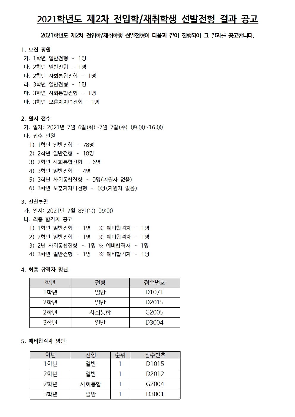 2021Çг⵵ Á¦2Â÷ ÀüÀÔÇÐ/ÀçÃëÇлý ¼±¹ßÀüÇü °á°ú °ø°í